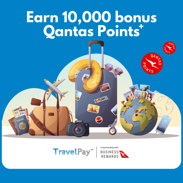 ^Earn 10,000 bonus Qantas Points when you offer ‘TravelPay Later’ to customers and receive one or more TravelPay Later payments between 1 August to 31 October 2024. Businesses must be a Qantas Business Rewards member (join free here) and use the same ABN for your TravelPay account. Qantas Points earned from this campaign will be credited to the Members’ Qantas Business Rewards Account by 14 June 2024.